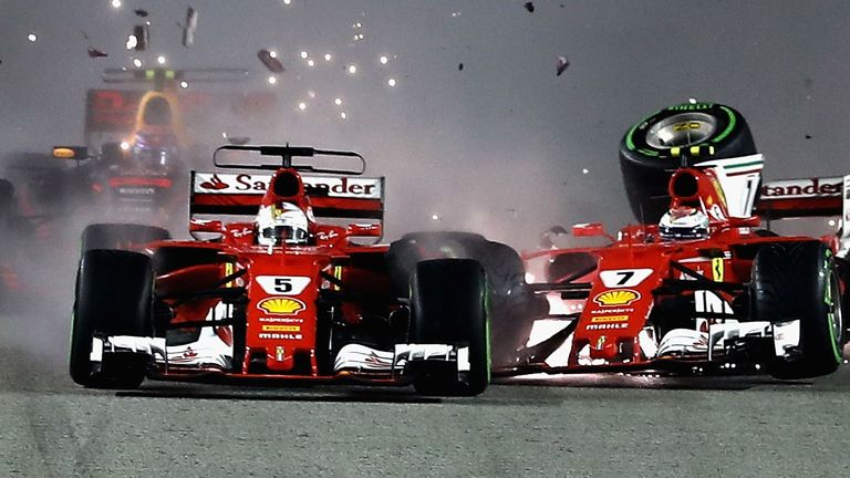 Cursa nocturna din Singapore si-a serbat in acest an cea de-a zecea editie. Pentru prima data in deceniul scurs de la inaugurarea circuitului stradal, startul s-a dat pe ploaie, pilotii optand pentru diverse strategii in ceea ce priveste cauciucurile. Plecat din pole position, Sebastian Vettel a tras spre Max verstappen pentru a-l bloca, pilotul Red Bull luand startul de pe a doua pozitie. Insa Kimi Raikkonen a plecat foarte bine de pe cea de-a patra pozitie a grilei, ajungand repede in paralel cu Verstappen. Olandezul a ajuns sa fie "strans" de cele doua monoposturi Ferrari si s-a acrosat cu Raikkoen, ricosand in Vettel. Scapat in pozitia de lider dar cu monopostul lovit, Sebastian Vettel s-a rasucit in al treilea viraj, rupand partea frontala a monopostului si abandonand. Verstappen si Raikkonen au abandonat la randul lor, lovindu-l si pe Alonso in timpul iesirii in decor.